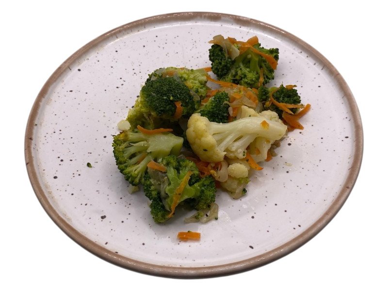 брокколи, цветная капуста, морковь, лук, масло растительное